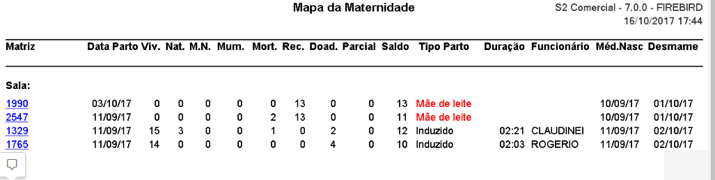 A matriz 1990 recebeu leitões no dia 03/10 mas a previsão de desmame é dia 01/10, isso ocorre porque nesse cliente foi configurado que a idade de desmames dos leitões é de 21 dias (meta de período de gestação).