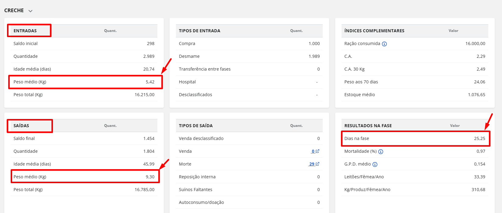 PesoMédioEntrada: peso médio de entrada por leitão.